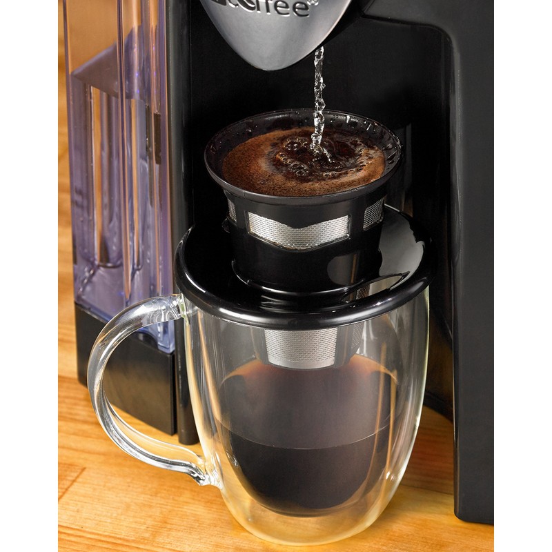 Java Concepts single cup pour over and tea infuser offers innovative design and superior quality-our patented stainless steel micro-infusion filter has been designed to give you the perfectly brewed cup of coffee every time. The laser cut mesh allows enough time for the coffee to steep and gain flavor while keeping the grounds contained. We also include a tea steeper and drip tray to steep your loose leaf tea. Easy to use-simply add your favorite fresh ground coffee to the pour over and steep with hot water, that's it. You have a full bodied cup of coffee within seconds. When you are done just place in your dishwasher or rinse with warm water. Use with keurig and I coffee machines. Do you love the ease of a keurig or other single serve machine but Hate the coffee it creates the Java Concepts pour over is specifically designed to work with any keurig or single serve machine. Fill the pour over with your favorite coffee and use the hot water setting on your machine to dispense water at the perfect temperature for Brewing every time. Save money and waste never buy expensive k-cups or another coffee filter again. Our permanent coffee filter saves you money and eliminates the waste of k-cups and paper filters in your garbage and in our landfills. Built to last, guaranteed Java Concepts uses only premium food grade stainless steel and is designed for durability, stain resistance, and rust proof. We offer a 100Percent money back guarantee.