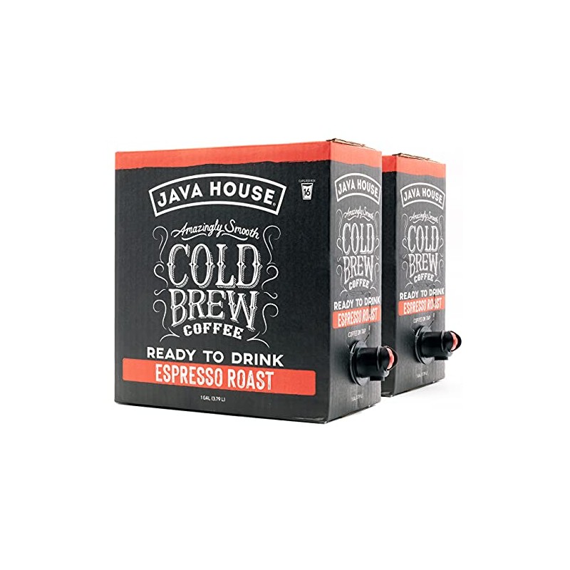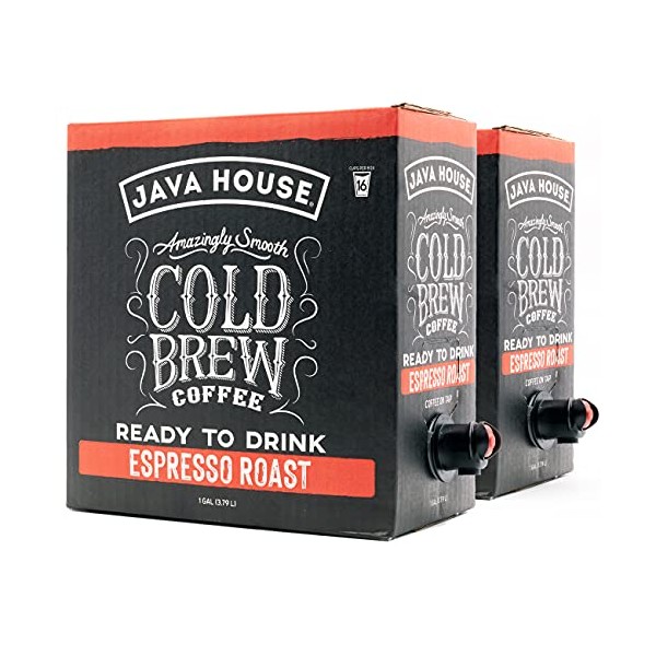 Java House Cold Brew Coffee On Tap, (1 Gallon / 128 Fluid Ounce Each Box) Not a Concentrate, No Sugar, Ready to Drink Liquid (Espresso, 2 Pack)