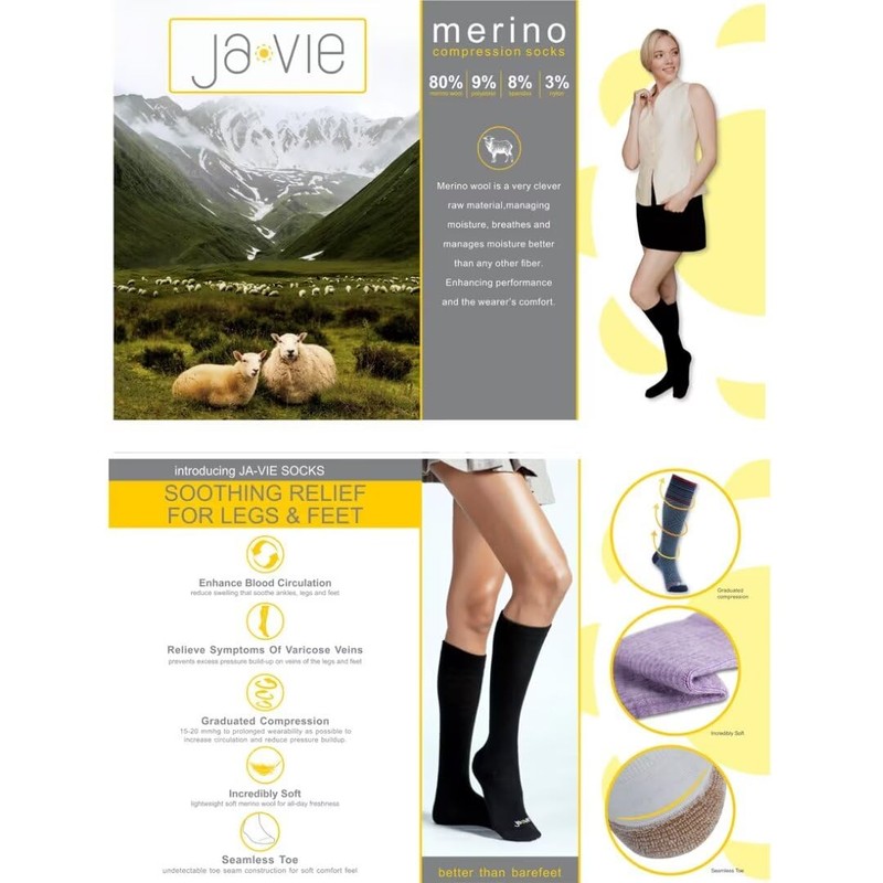 - COMFORT MATERIAL- ja-vie multi stripes socks are made from 80% Merino Wool, which is much more breathable and soft than other cotton & synthetic compression socks on the market. We provide the most comfortable experience for daily wearing!