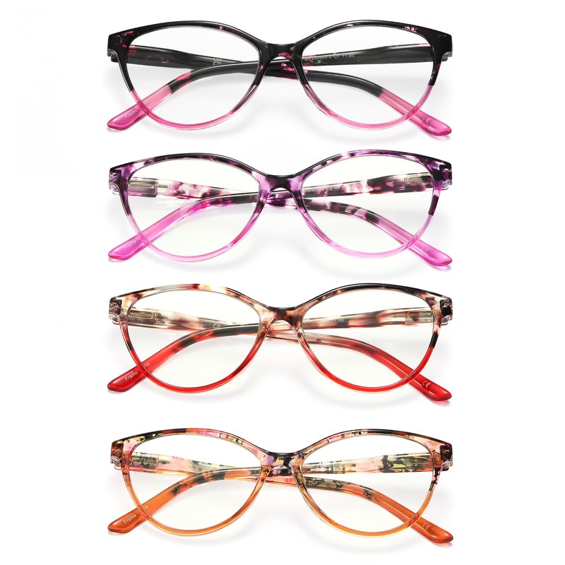 JAWSOCK Reading Glasses for Women feature lightweight anti-blue light lenses, spring hinges, cat-eye frames, anti-fatigue protection, UV resistance, and a classic and fashionable appearance(3.50x)