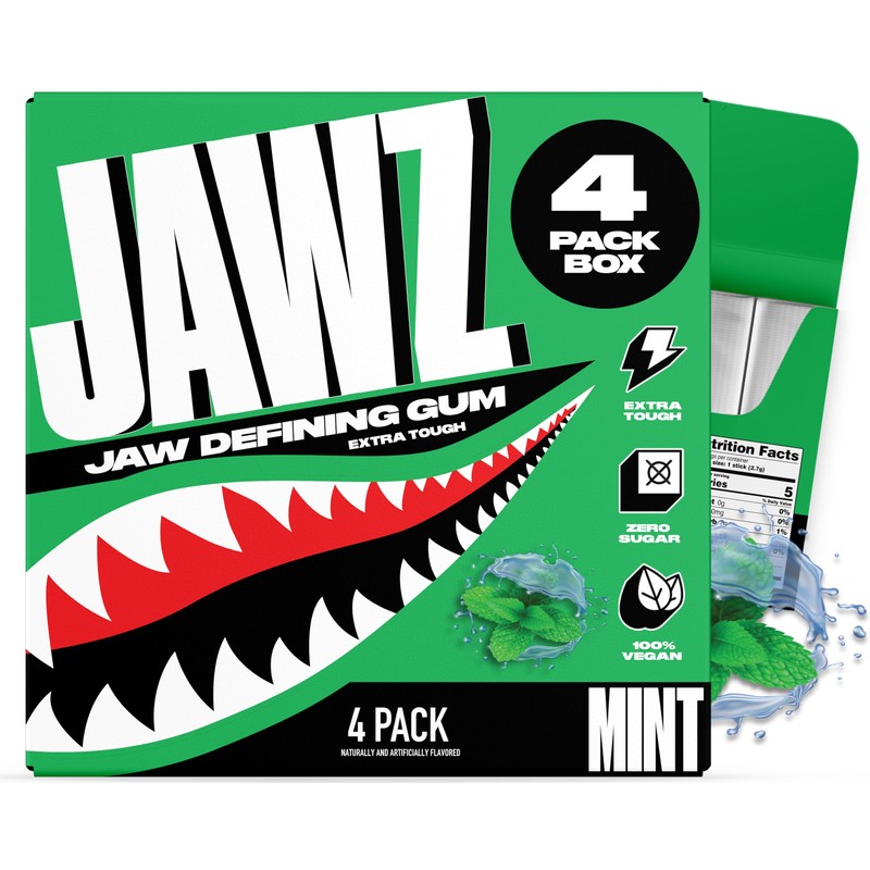 Jawz Gum Jawline Chewing Gum, 4 Pack Box, Mint, Face Slimming and Toning, Sugar Free