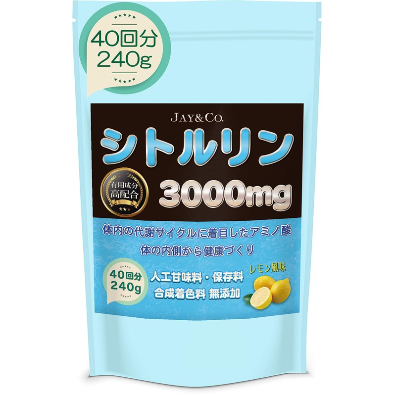 JAY&CO. 最高水準 1回当たり3000mg 飲みやすい シトルリン パウダー (無添加:人工甘味料, 保存料)国内製造 (レモン, 240g)