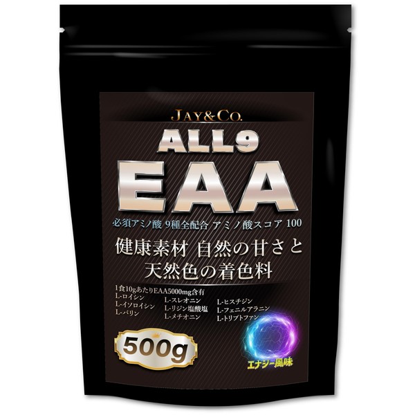 JAY&CO. アミノ酸スコア100 人工甘味料無添加 ALL9 EAA 必須アミノ酸9種を全配合 (エナジー, 500グラム (x 1))