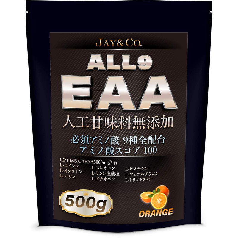 JAY&CO. アミノ酸スコア100 人工甘味料無添加 ALL9 EAA 必須アミノ酸 9種を全配合 (オレンジ, 500g)