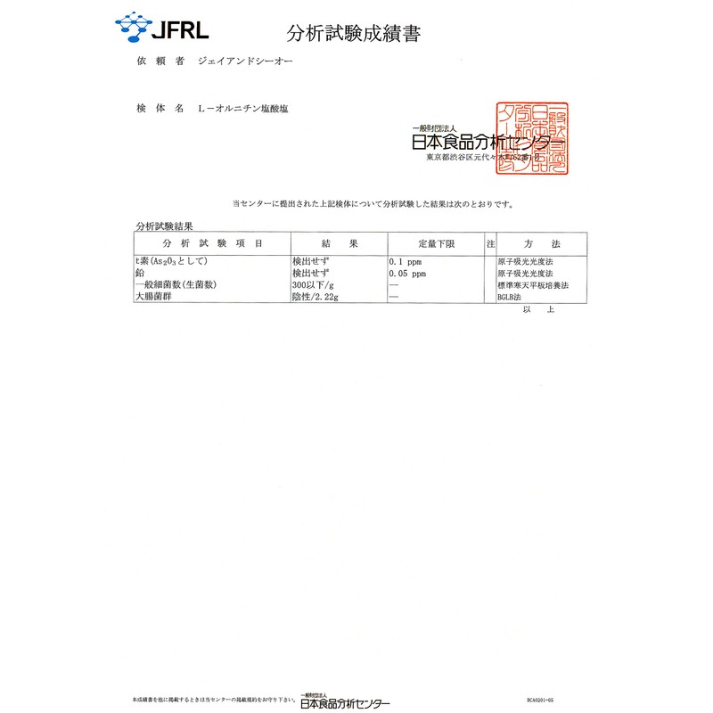 - L-オルニチンの原料原産地:中国、 錠剤製造工場:国内。弊社の使用する原料は厚生労働省の規格基準値に合格し、安全性が確認された原料を使用しています。
