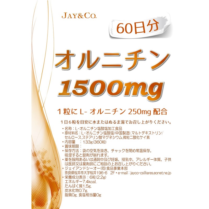 JAY&CO. オルニチン 1500mg 錠剤 (60日360粒)