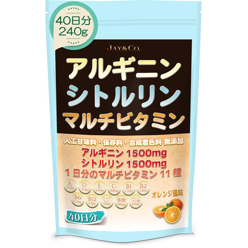 JAY&CO. アルギニン ・ シトルリン ・ マルチビタミン パウダー(無添加:人工甘味料 保存料) 国内製造 (オレンジ, 40日分)
