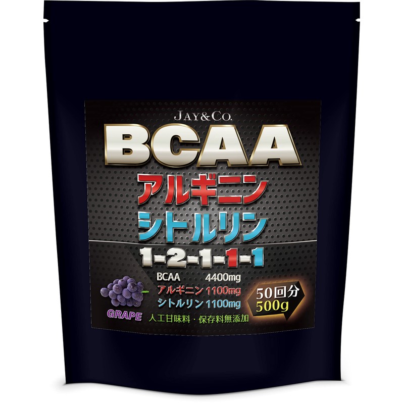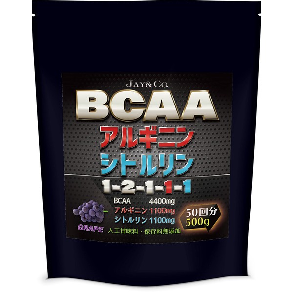 JAY&CO. 無添加人工甘味料 BCAA + アルギニン & シトルリン 国内製造 (グレープ, 500g)