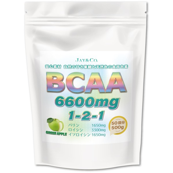 JAY&CO. (自然の甘みと天然色) BCAA 6600mg 1-2-1 国内製造 (500グラム (x 1), グリーンアップル)