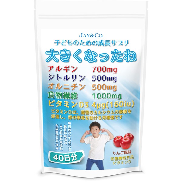 JAY&CO. 子どものための成長サプリ 大きくなったね (人工甘味料、保存料、合成着色料不使用) (りんご(+ビタミンD), 250グラム (x 1))