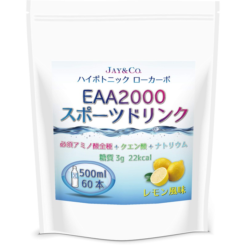 JAY&CO. 粉末 必須アミノ酸 EAA 入り ハイポトニック スポーツ飲料 (低糖質ローカーボ・低カロリー) (レモン, 60本分)