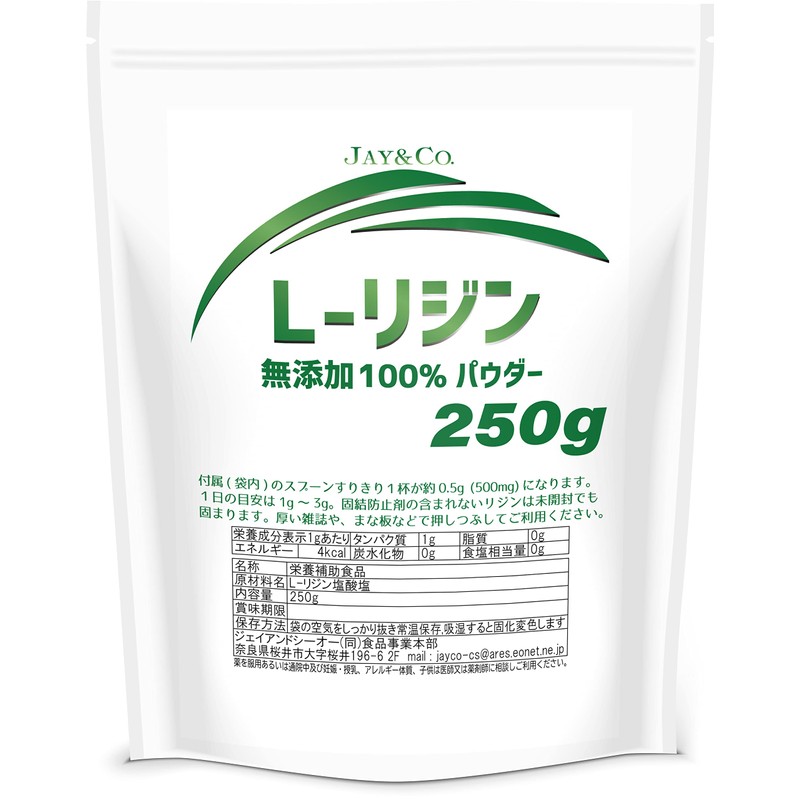 JAY&CO. L-Lysine Additive-Free 100% Powder (8.8 oz (250 g)