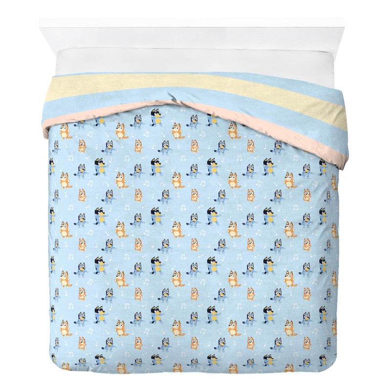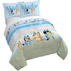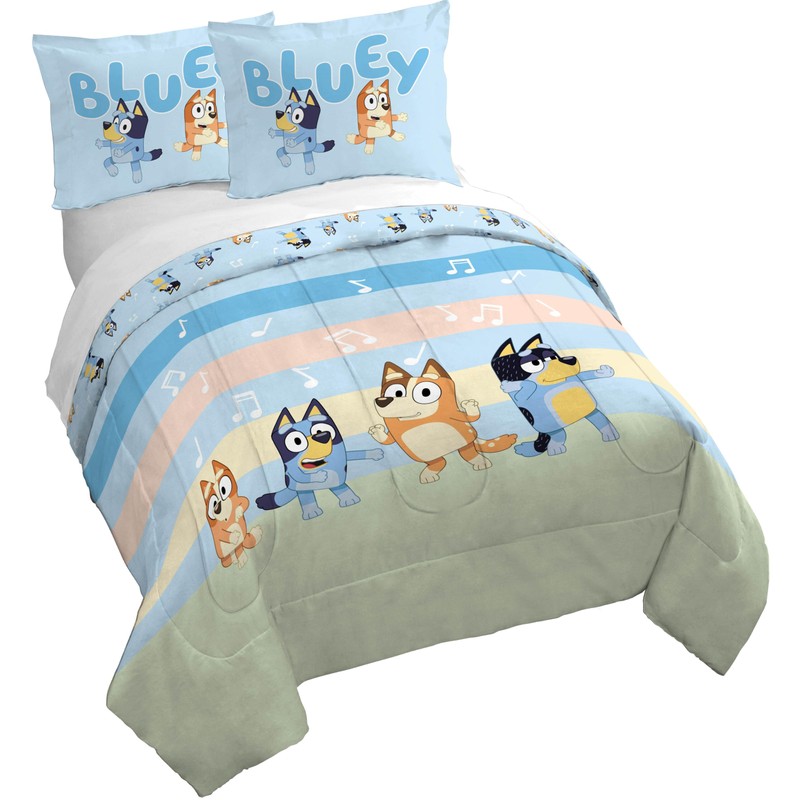 - Colorful Bluey Theme: Vibrant character bedding featuring the Heeler Family: Bandit, Chilli, Bluey and Bingo. Transform your child's room with this fun, animated bedding collection.