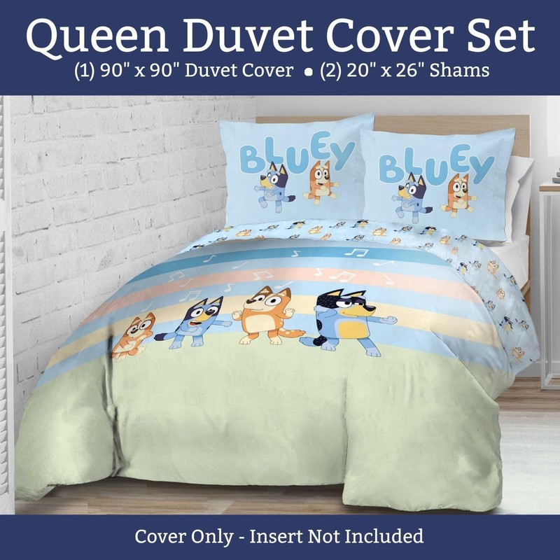Jay Franco Duvet Cover Set – 3 Piece Comforter Cover and Sham Set, Super Soft Cozy Kids Bedding (Insert Not Included) Multi - Bluey, Queen