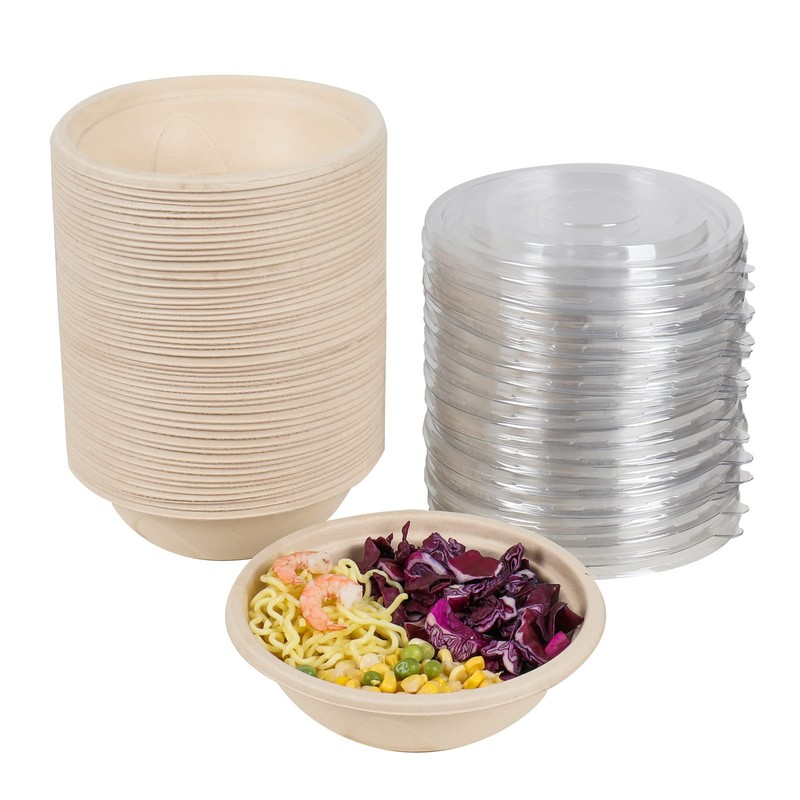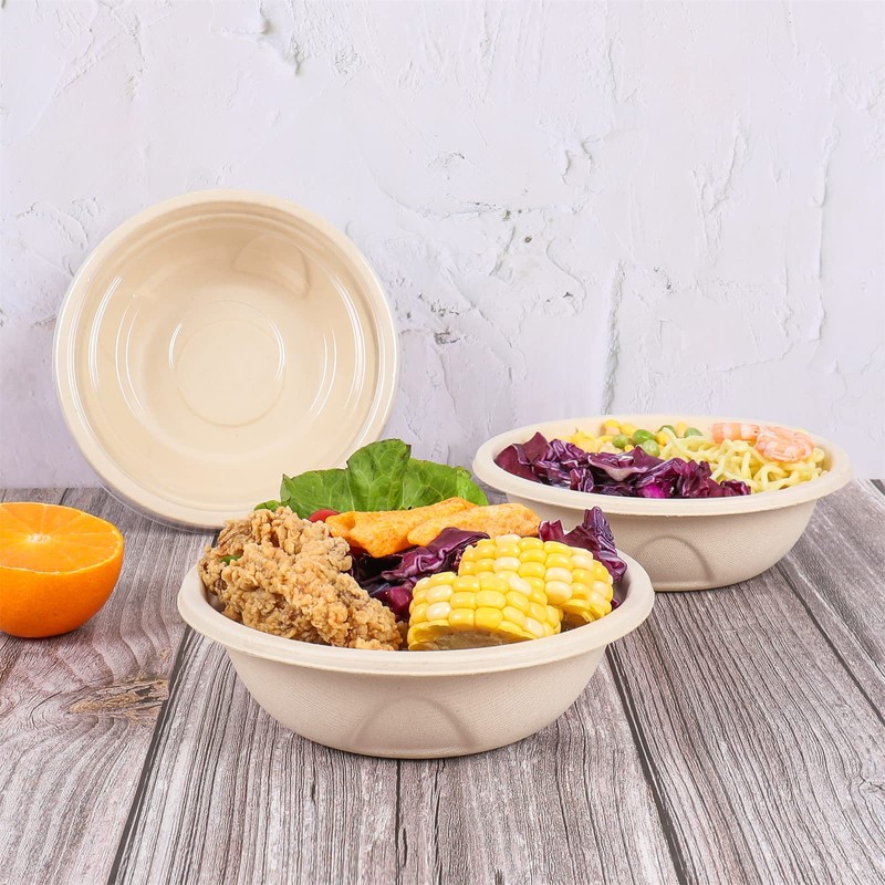 - Packing: 25OZ Sugarcane Fiber Biodegradable round bowls, pack of 50 bowls and 50 lids. Bowls are made with 100% natural biodegradable materials,Eco-friendly Plant Fibers. Lids are made with high quality PET material.