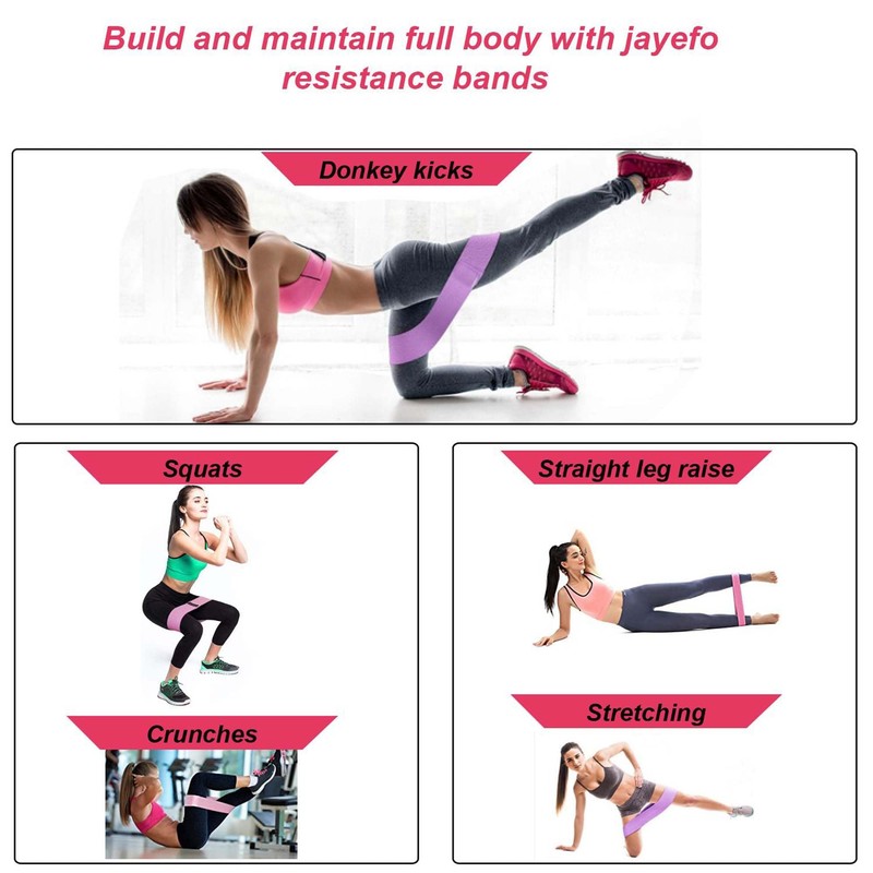 JAYEFO Set of 3 Resistance Bands (Set of 3-Pink/Gray/Black)