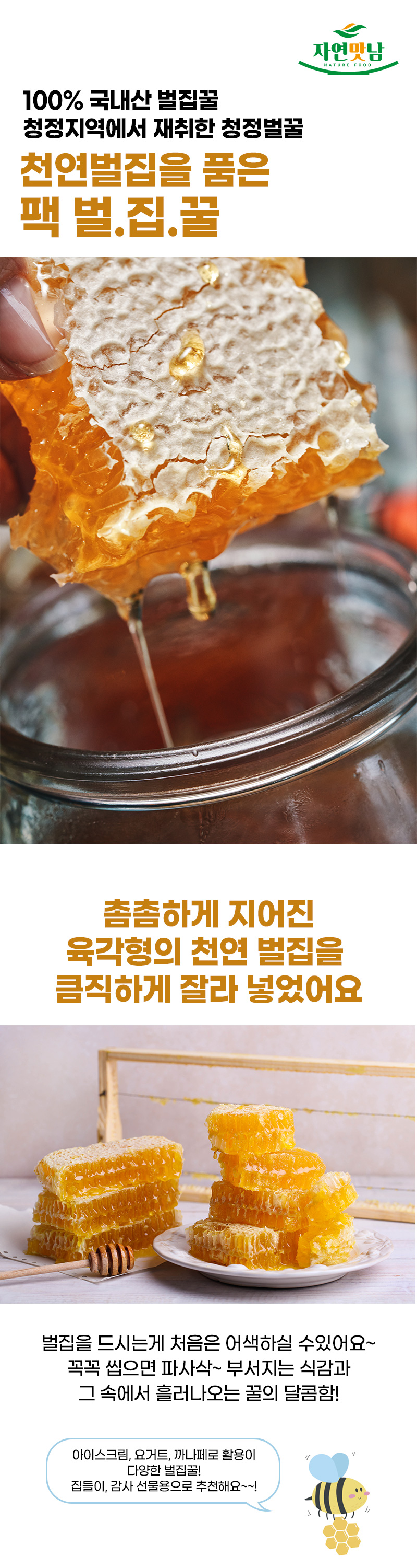 Jayeonmatnam 국내산 토종방식 꿀 팩 벌집꿀 700g(팩포장) Domestic Native Method Honey Pack Honeycomb Honey 700g (Pack Packaging)