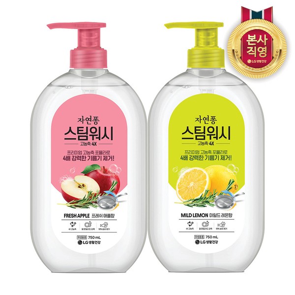 Jayeonpong Steam Wash Container 750mlx2, Choose 1 of Lemon/Apple, Apple / 자연퐁 스팀워시 용기 750mlx2개 레몬/애플 중 택1, 애플