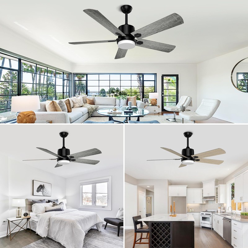 - 【 Reversible Motor】: 52-Inch Fan features an quiet reversible DC motor, from the downshift mode in summer to the upshift mode in winter. You can use ceiling fan all year round. The fan noise is less than 35dB and has a good airflow of over 3300CFM, brings you comfortable sleeping with a quiet living environment