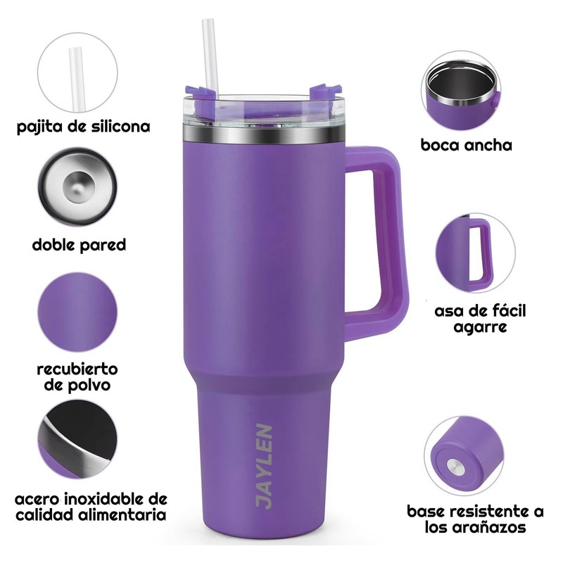 - ✅ ACERO INOXIDABLE DE CALIDAD PREMIUM: El vaso de viaje JAYLEN con pajita ha sido construido con un cuerpo de acero inoxidable resistente, un material elogiado por su durabilidad. Aislamiento eficaz con una tapa de rosca transparente para mantener tus bebidas frías y calientes.