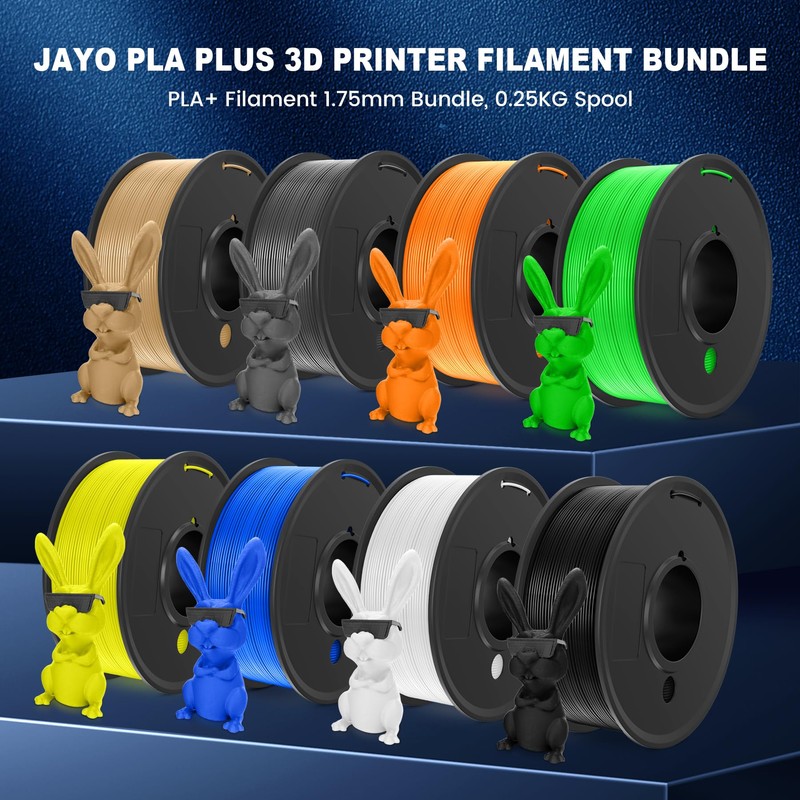 JAYO PLA+ Filament Bundle 1.75mm, 3D Printer Filament Bundle Multicolor, Individually Vacuum Packed, 250g Spool, 8 Pack, 2KG in Total, Black+White+Grey+Blue+Green+Orange+Yellow+Burlywood Color