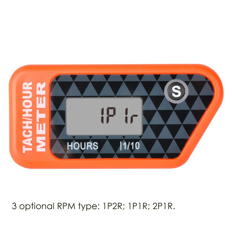 Jayron Digital LCD Tachometer Inductive Tach Hour Meter Display Max RPM Waterproof for Most Gas Engine Marine ATV Generator Lawn Tractor Motorcycle (Orange)