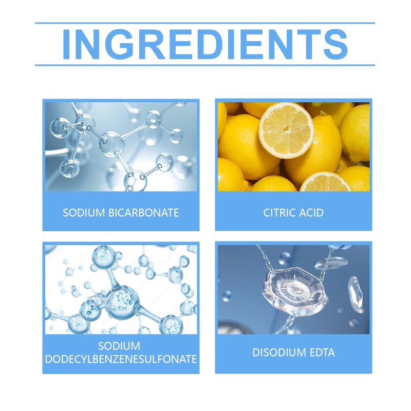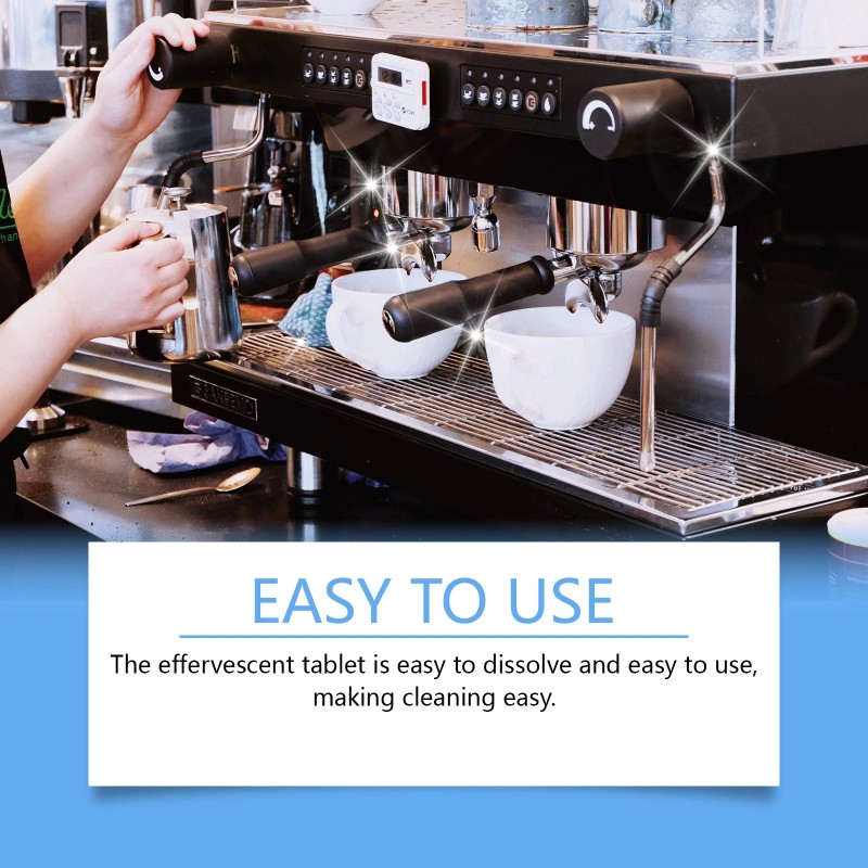 Our coffee maker effervescent tablets contain citric acid, sodium dodecyl benzene sulfonate and disodium EDTA. It can quickly remove the hard scale in the machine and restore the best performance of the machine. Its use is simple: clean the filter basket and filter before use and place the product on it. Add the right amount of water, then run the coffee machine to clean. It can effectively clean the coffee machine, reduce wear and tear, and help extend the service life of the equipment.
