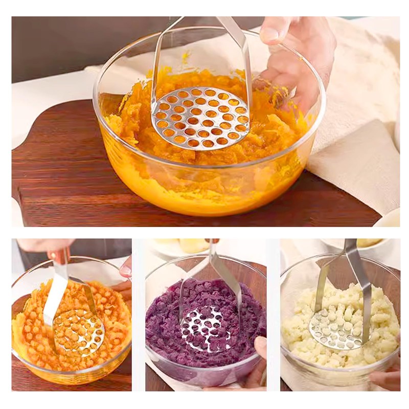 - Comfortable Grip Mashed Potato Masher: The ergonomic handle of this potato smasher provides a comfortable grip, making it easy to mash potatoes and other ingredients without straining your hands. Crafted from high-quality stainless steel, this potato masher is built to last, ensuring long-lasting performance for all your mashing needs