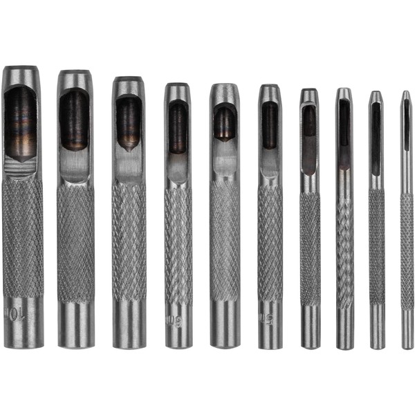 - 10pcs hollow punch set for making clean holes in gaskets, holes in leather, paper, plastic and much more.