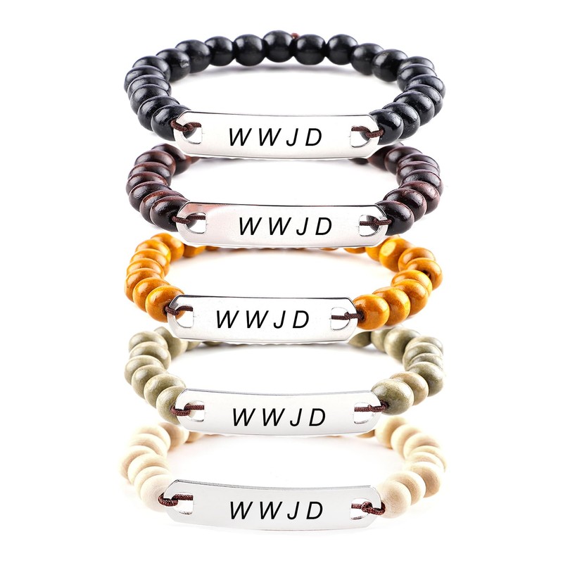 - What Would Jesus do Bracelets Pack: 5 Pieces 8MM Wooden Bead Bracelets with Engraved "WWJD".