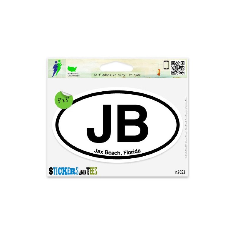 JB Jax Beach Florida Oval Car Sticker Indoor Outdoor 5" x 3"