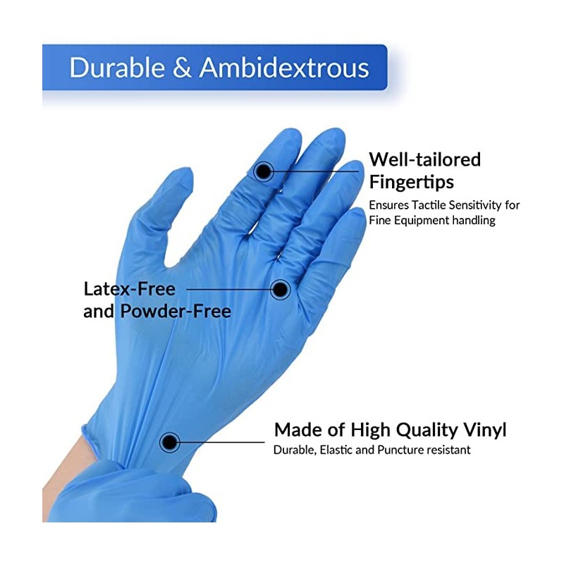 - [VINYL GLOVE] --Guarantee Express Delivery on time ALL ORDERS (Prime and non-Prime orders). Size: Disposable Gloves Medium, Disposable Gloves Large, Disposable Gloves Small, Disposable Gloves Extra Large.