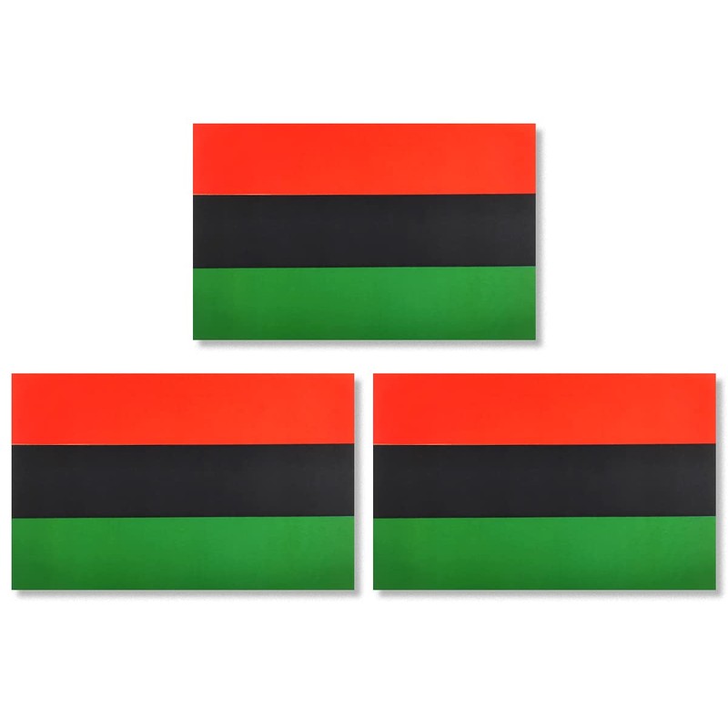 - SPECIFICATION: Set of 3 Afro American flag magnet decals per pack, flag size is 3x5 Inches. Made of premium soft magnet vinyl and UV-resistant inks Ink ensures no damage to car paint and long-lasting colors. Durable enough to stand the test of time. Hold firmly and waterproof, not afraid of wind and rain and all kinds of extreme weather.