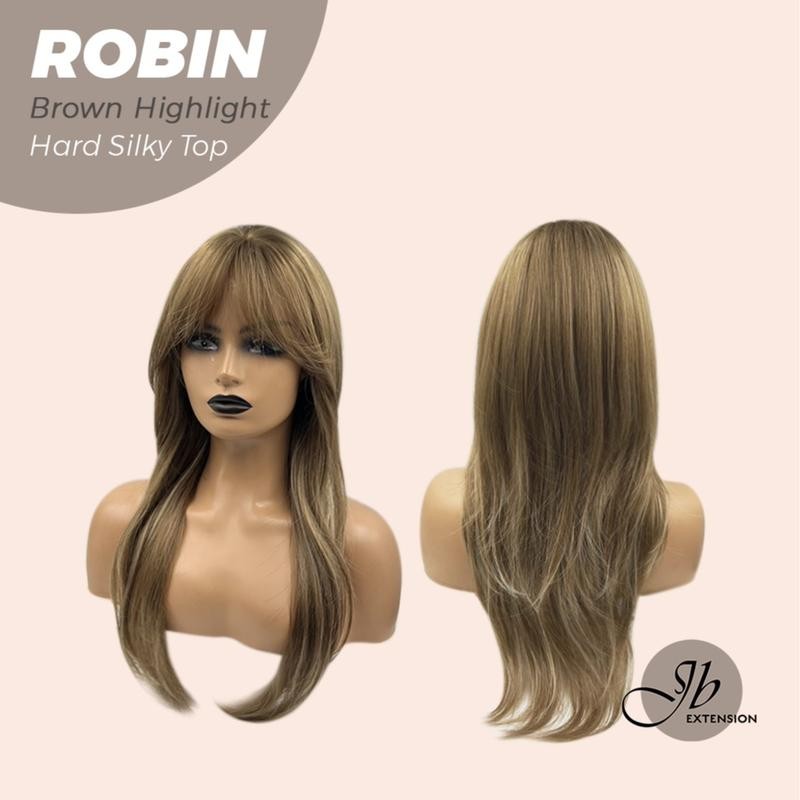 JBEXTENSION 22 Inches Scalpiana Wolf Cut 3.5X4 Hard Silky Top Natural Scalp Effect Wig ROBIN - Color: Brown Highlight