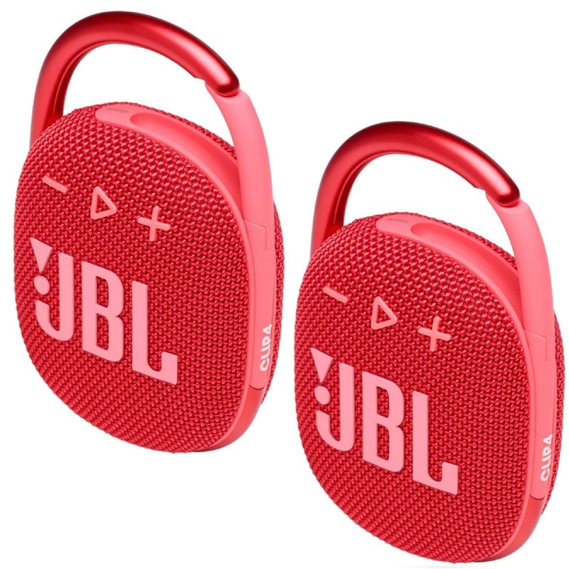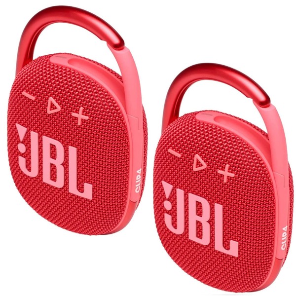 JBL 2 Pack Clip 4 Waterproof Wireless Audio Bluetooth Speaker Bundle (Red)