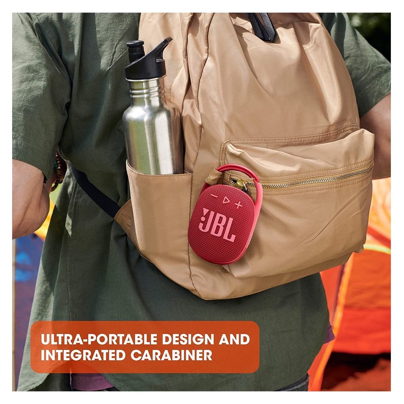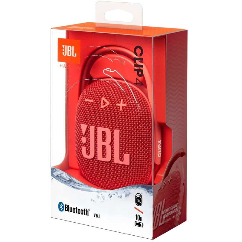 - JBL Clip 4’s ultra-portable design goes great with the latest styles, and its colorful fabrics and expressive details make it look as great as it sounds