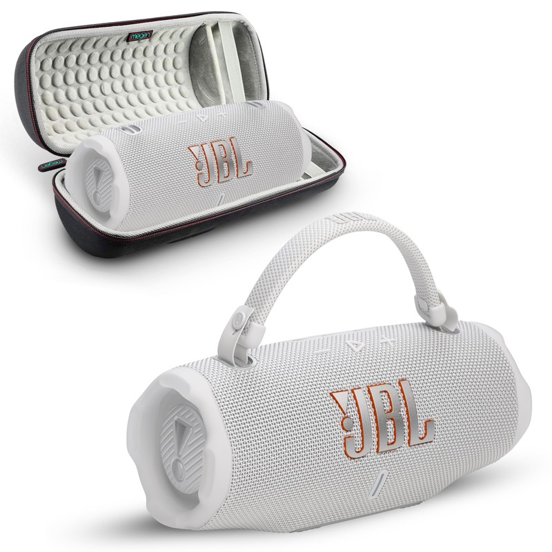 JBL Charge 6 Portable Bluetooth Speaker | IP68 Waterproof, DustProof, and DropProof, Outdoor Wireless Audio | 28Hrs Playtime, Megen Hardshell Protection Case (White)