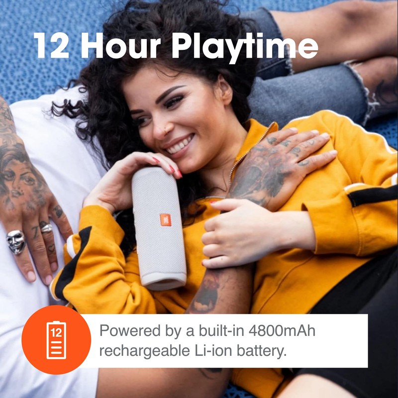 - 12 HOURS OF PLAYTIME - Don't sweat the small stuff like charging your battery. Flip 5 gives you up to 12 hours of playtime. Keep the music going longer and louder with JBL's signature sound.