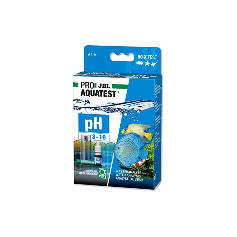 - Box contents: 1 x JBL water test set, ProAquaTest pH 3.0 -10.0, includes 1 reagent, 1 cuvette and 1 colour scale; contents: approx. 50 tests