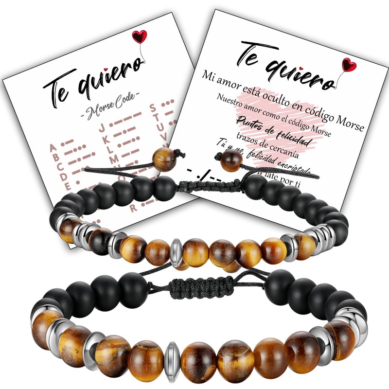 Jbniuay Pulsera de código Morse, pulsera de pareja., tiger eyes