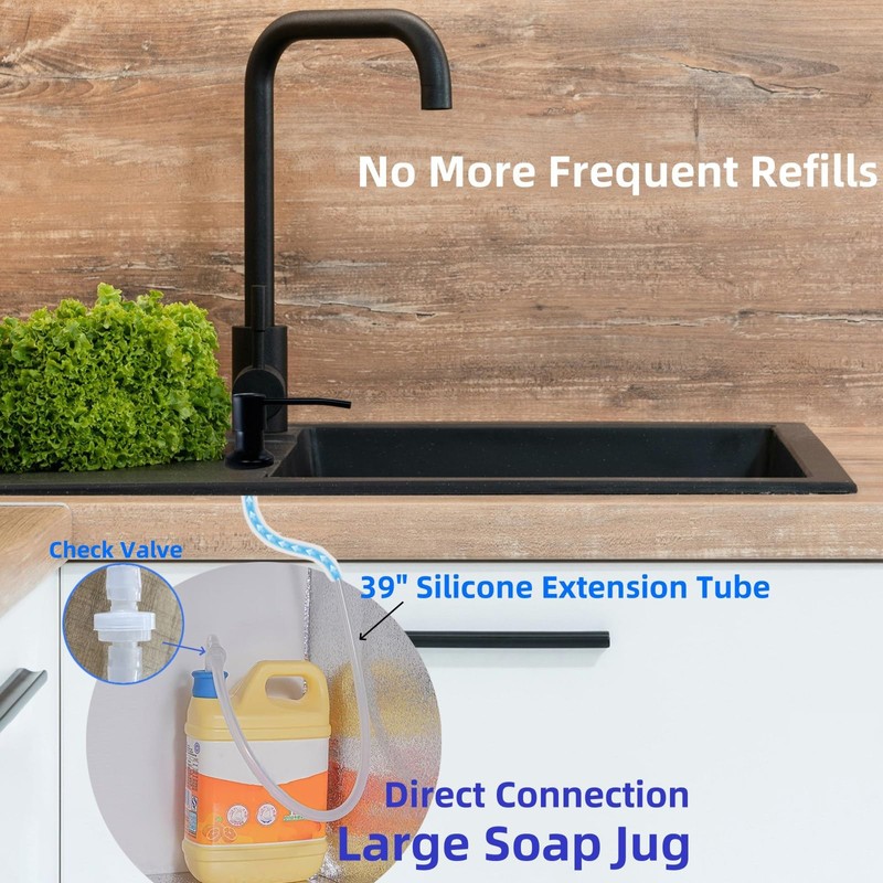 - No More Frequent Refills: Our sink soap dispenser extension kit comes with a tube that plugs directly into the large detergent bottle, eliminating the need to frequently add soap to the smaller bottles without having to crawl around under the sink.