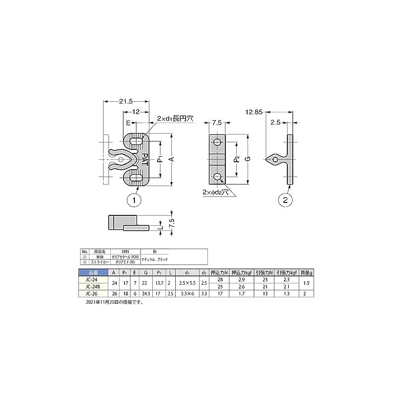 スガツネ工業 ランプ印 ジュラコンキャッチ JC-26 JC-26 ナチュラル