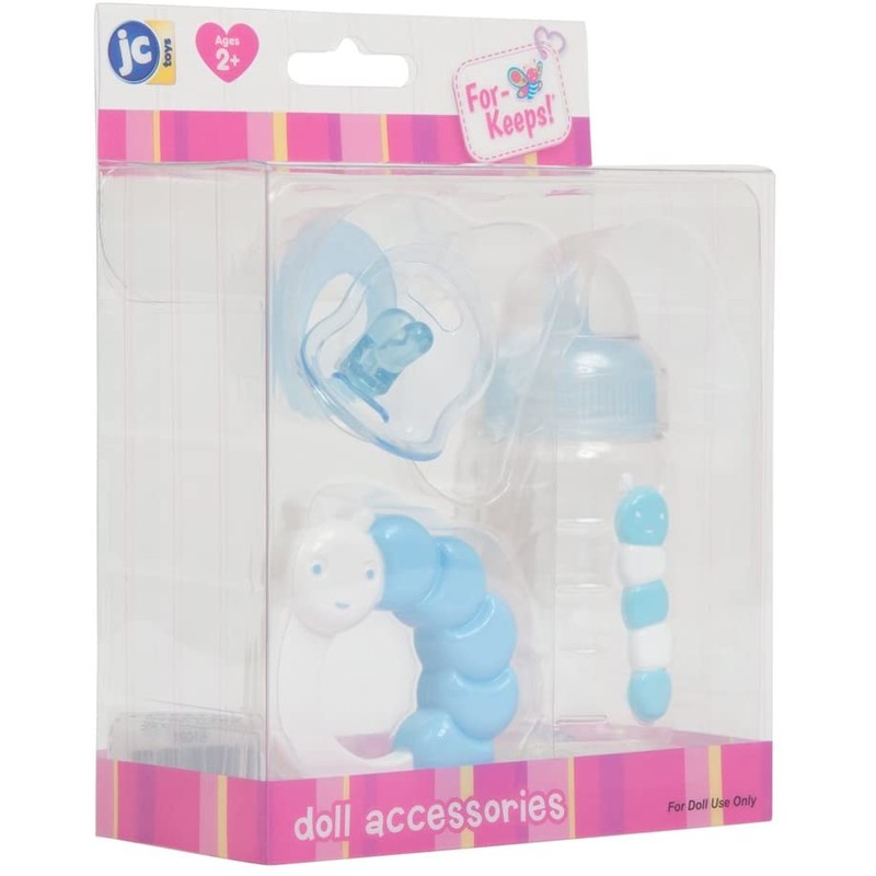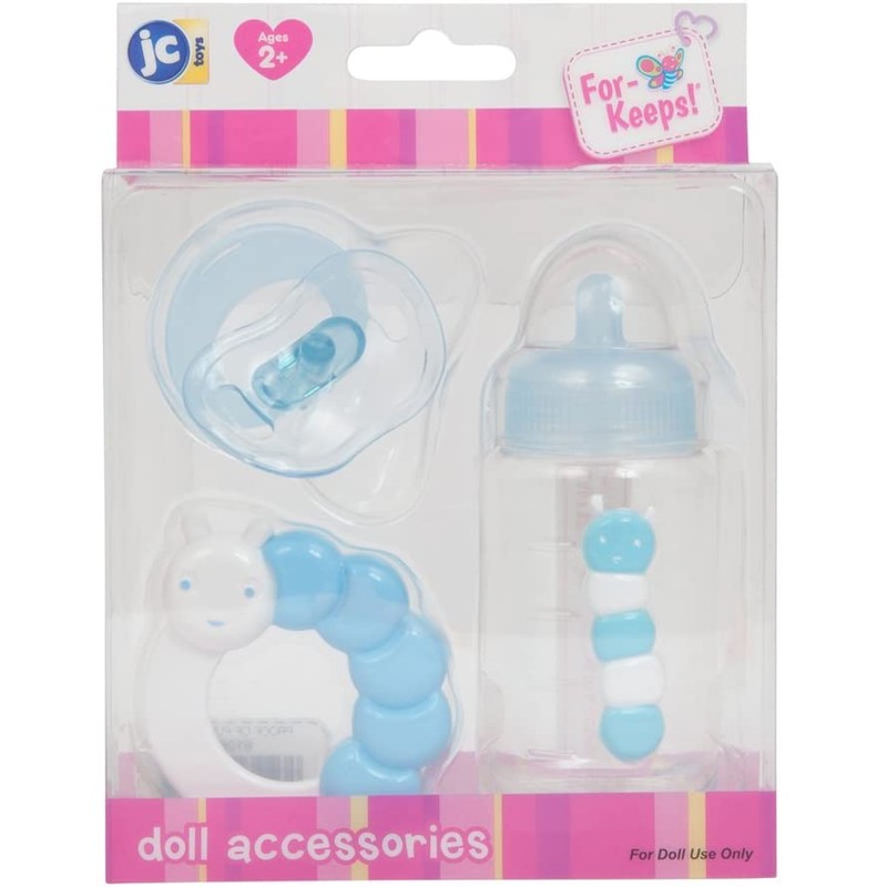 JC Toys Blue Baby Doll Bottle, Rattle & Pacifier Set for Keeps Playtime! | Fits Many Dolls up to 15" | Play Accessories | Ages 2+