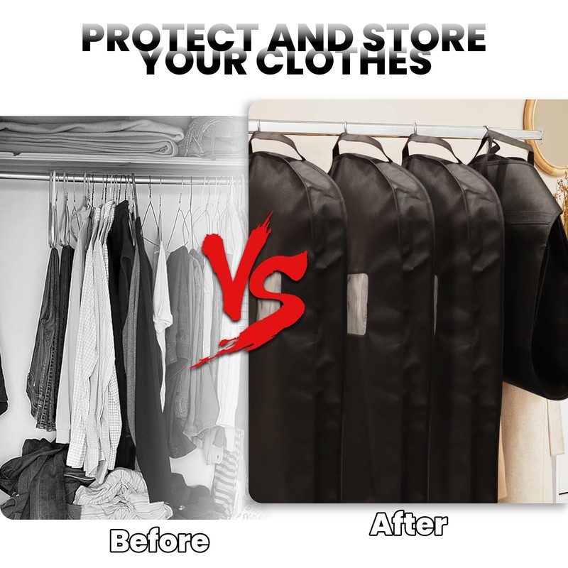 - Product Details:Our product includes 4Pcs black garment bags,each short suit bag measuring 42 x 23.6 inches/107 x 60 cm.And Each garment bag can hold 2 suits or 5 T-shirts,this 42inch suit cover bags are suitable for most of your daily clothes,including suits,dresses, shirts,sweaters, jackets ect