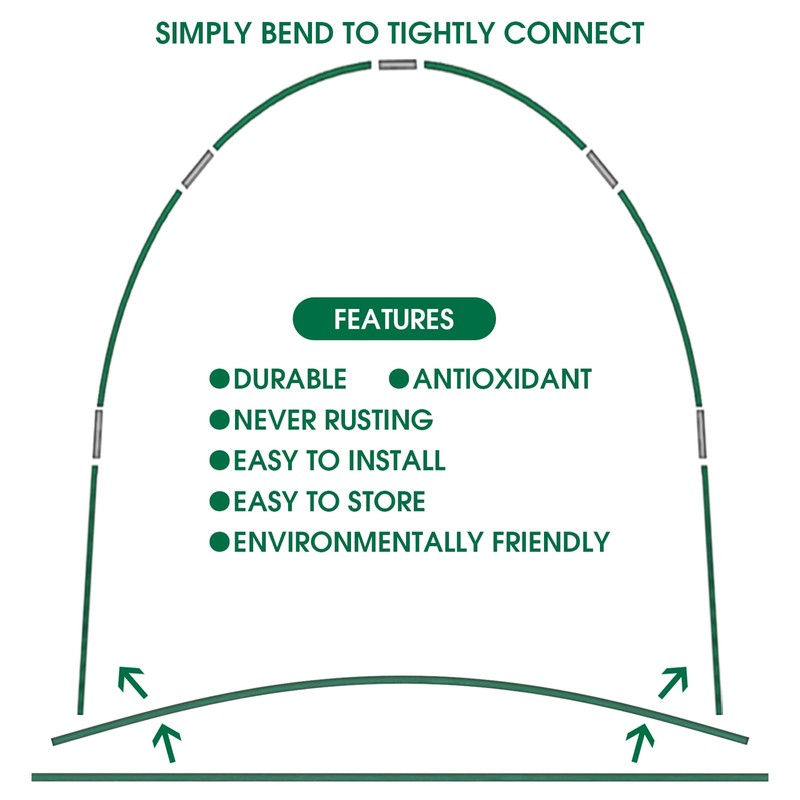 - Premium Material: Our garden hoops are made of high quality fiberglass, which is flexible, green and healthy, never rusty, anti-oxidant and can be used for a long time. It is an excellent choice for your garden to use as a conservatory.