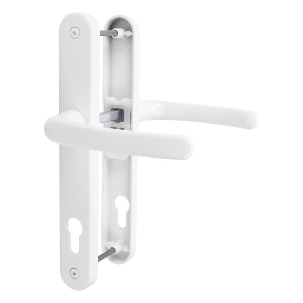 JCP PRO uPVC Door Handle Pair Set Sprung 92 PZ 92mm, Backplate 242mm x 34mm (210mm Screw Centres, White)