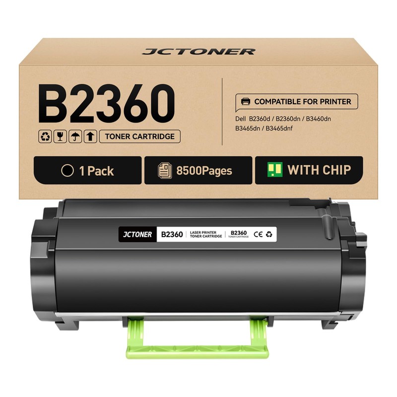 JCTONER B2360 M11XH Toner Cartridge Black High Yield with chip 1-Pack Replacement for Dell B2360 M11XH Toner Compatible with Dell B2360 B2360d B2360dn B3460dn B3465dn B3465dnf Laser Printer Ink All-in-One