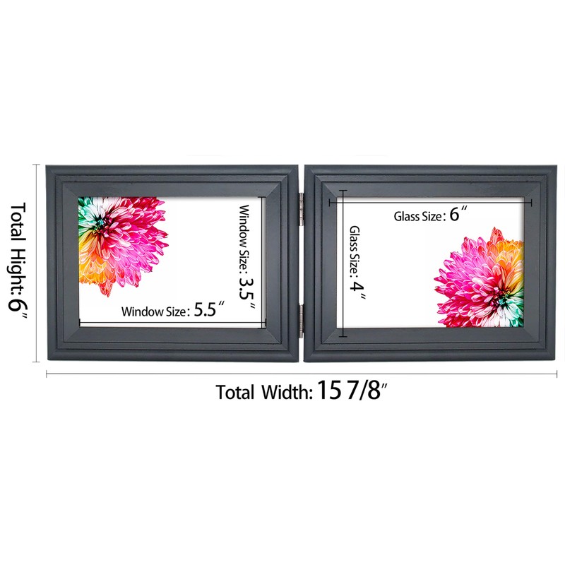 JD Concept Double 4x6 Horizontal Combo, Art 4 x 6 Black Wood Picture Frame - Opening 3.5x5.5 Foldable Photo Frame, for 4 by 6 Landscape View