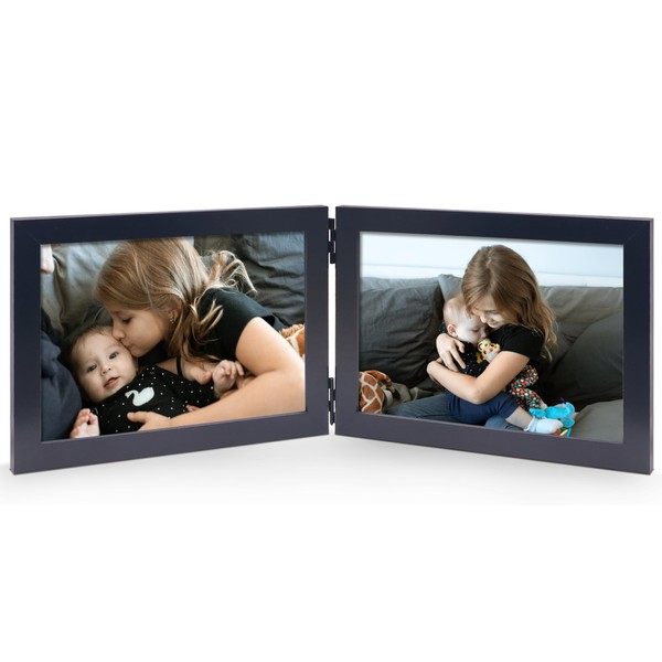 JD Concept Double 4x6 Horizontal Combo, Black Wood Picture Frame, 3.5x5.5 Opening Foldable Landscape View Photo Frame on Table-top or Wall
