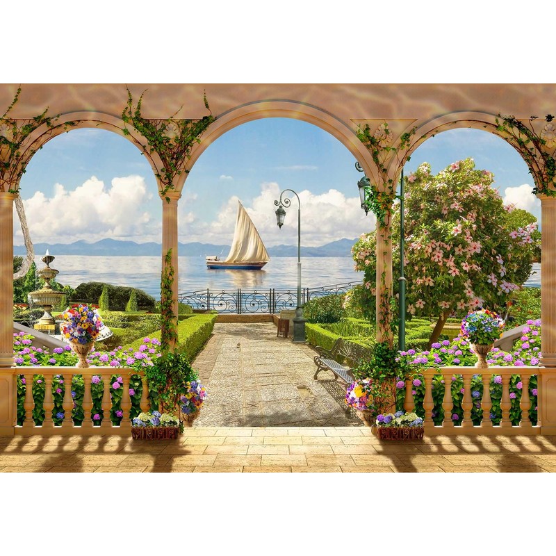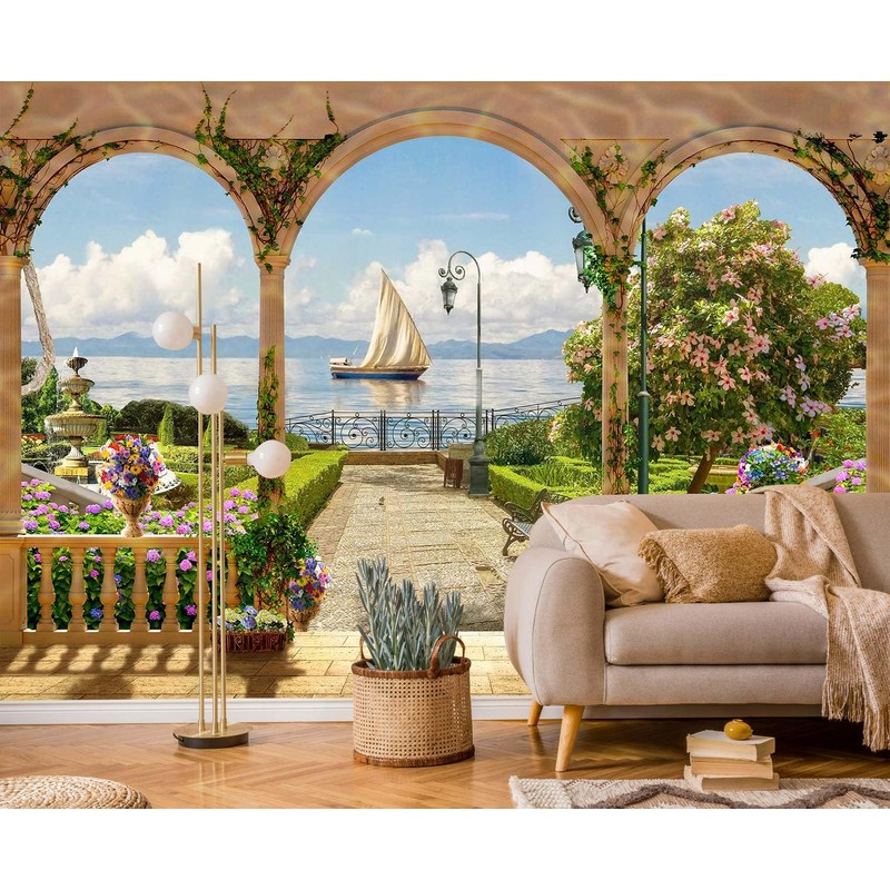 Jdayda Garden Wallpaper Seascape Sailboat Wall Mural for Bedroom Living Room (Not Self-Adhesive)